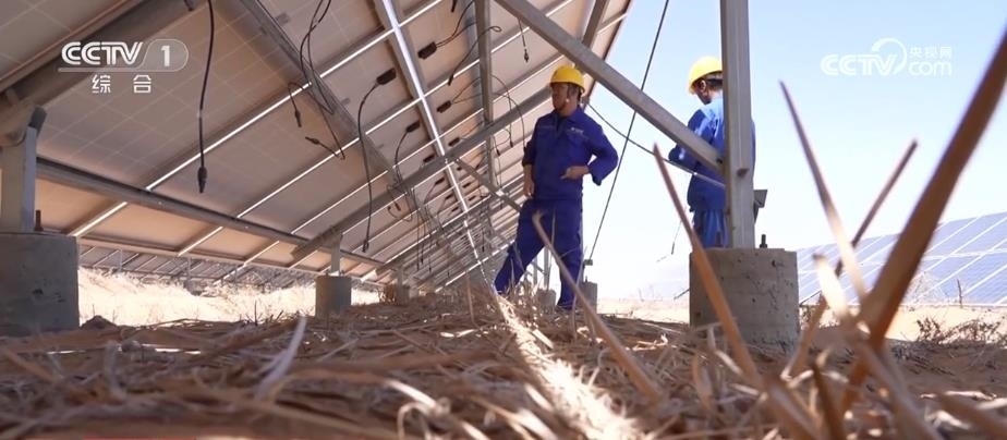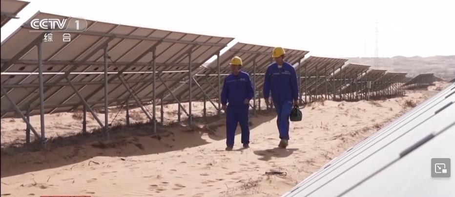 央視網(wǎng)消息:在寧夏中衛(wèi)市騰格里沙漠里,成千上萬塊藍色光伏板整齊排列,隨著太陽的運轉逐日追光,每年可以發(fā)電17億度。這里的工作人員被稱為“追日人”?!拔逡弧奔倨冢麄円廊粓允卦诠ぷ鲘徫簧?。