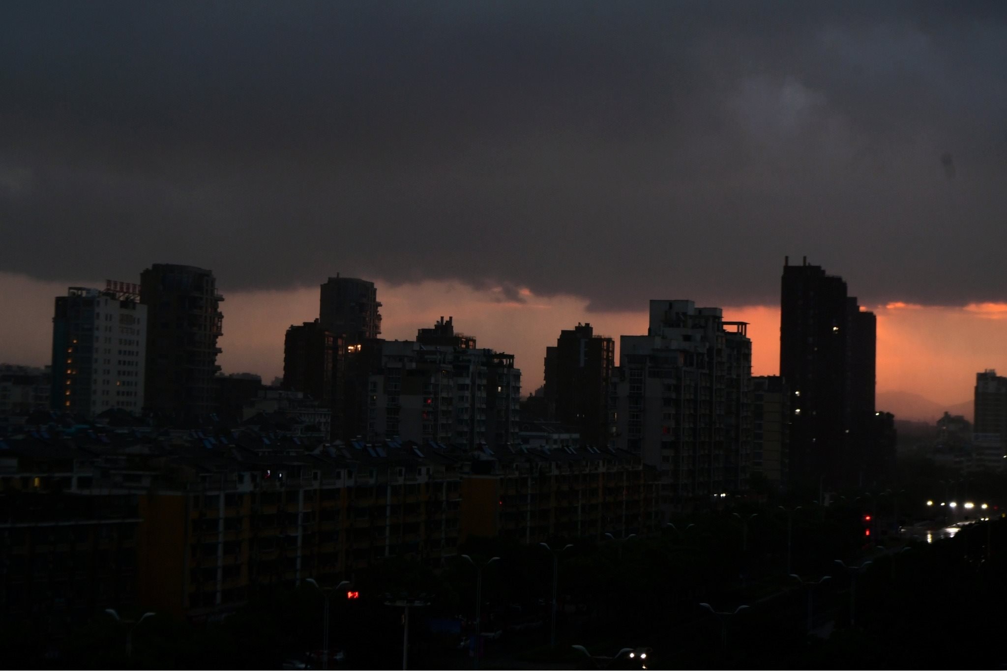 浙江金華遭遇強(qiáng)對流天氣 天空烏云密布