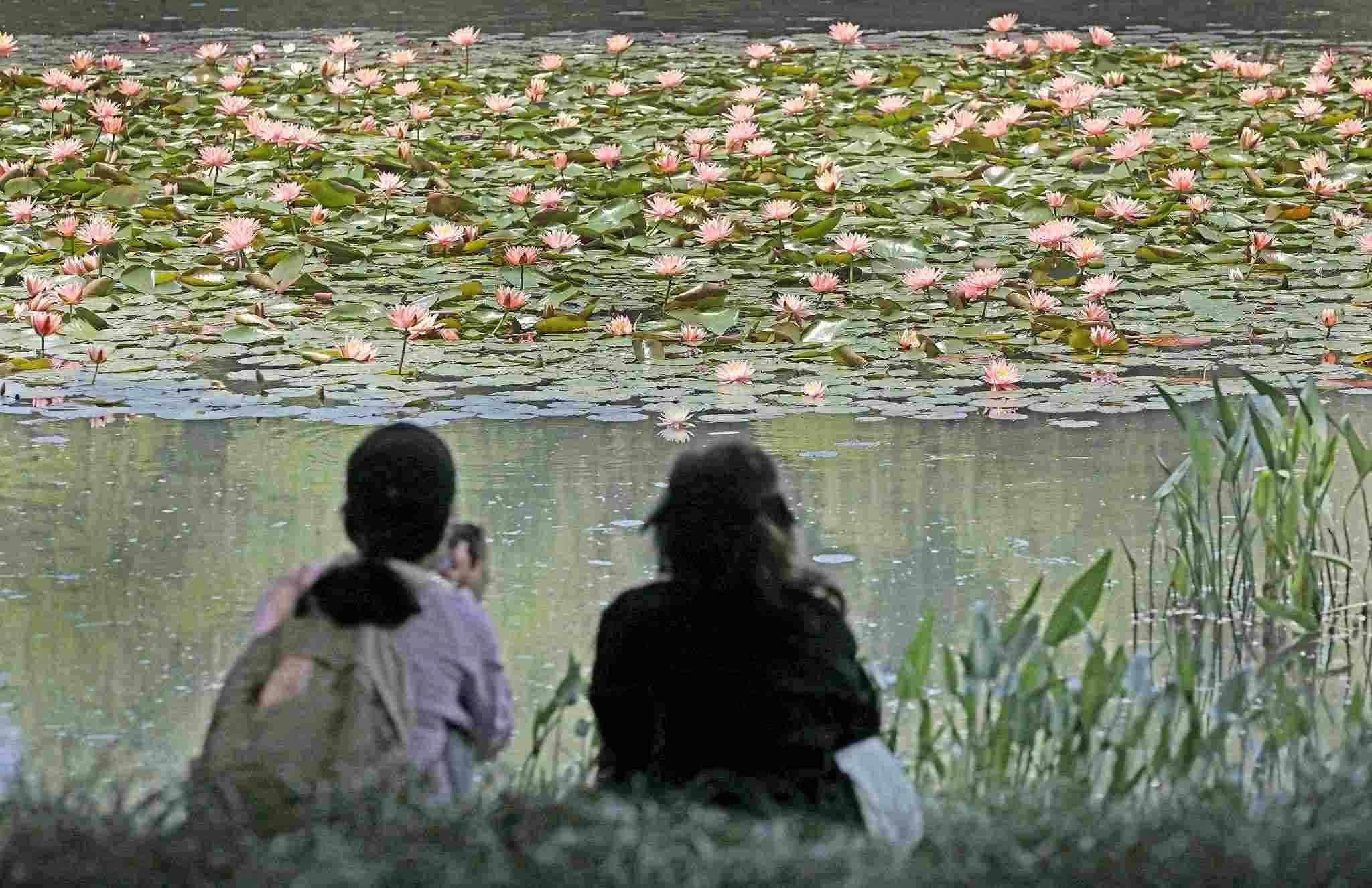 2023年5月9日,杭州,西湖龍泓澗景區(qū),各色睡蓮成片綻放,在水面上搖曳身姿,靜謐朦朧,夢幻唯美,恍若走進(jìn)“莫奈花園”,吸引眾多市民游人前來賞花拍照。視覺中國