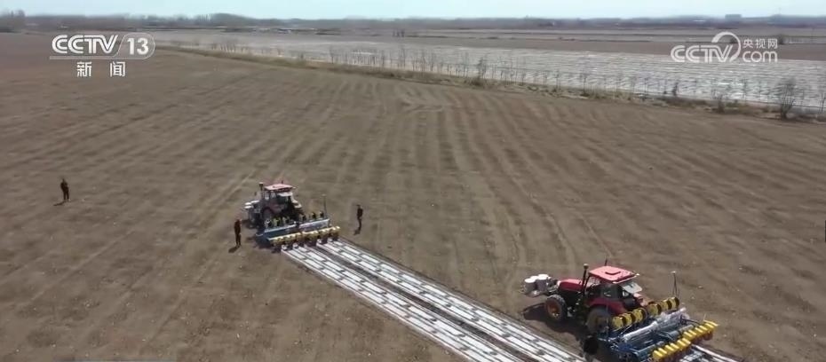 眼下,新疆瑪納斯縣65萬(wàn)畝棉花全面開(kāi)播。在文家莊村的棉田里,五臺(tái)裝有北斗導(dǎo)航系統(tǒng)的大馬力拖拉機(jī),正按照預(yù)先設(shè)定的播種線路,進(jìn)行精量播種。