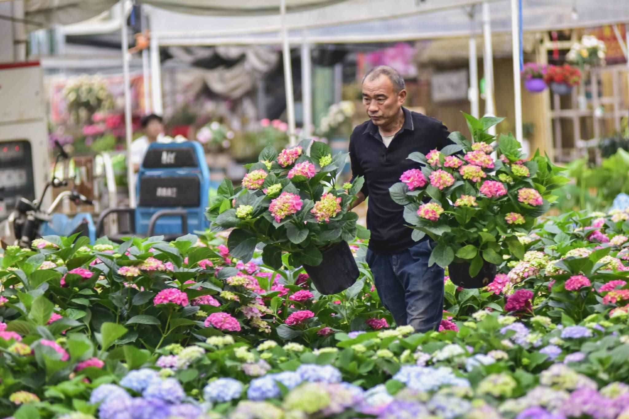 山東濰坊:母親節(jié)臨近 花卉市場(chǎng)生意紅火