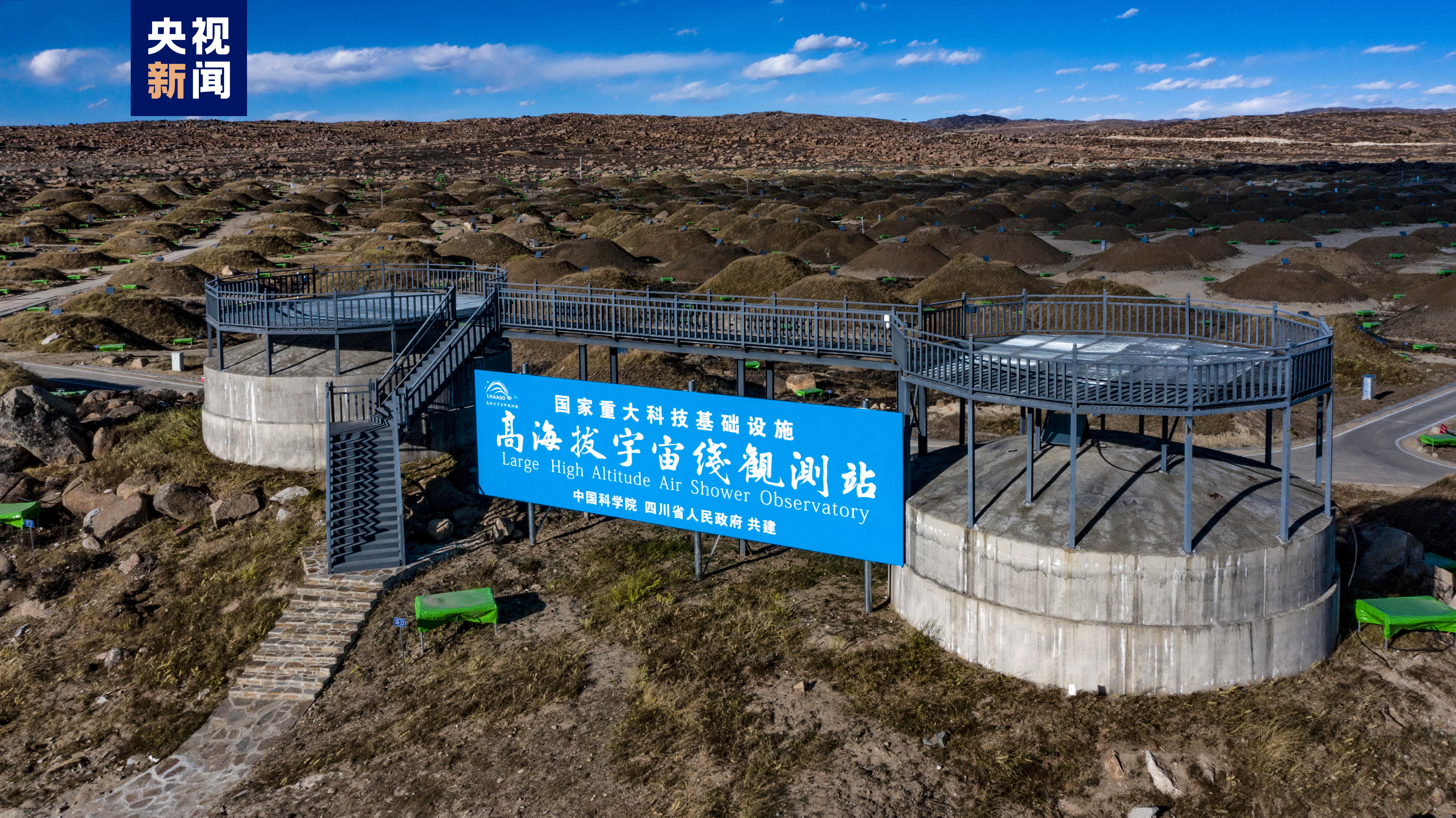 高海拔宇宙線觀測站位于四川省稻城縣海子山,平均海拔4410米,占地面積約1.36平方公里,由5216個電磁粒子探測器和1188個繆子探測器構成的一平方公里地面簇射粒子探測器陣列、78000平方米的水切倫科夫探測器陣列、18臺廣角切倫科夫望遠鏡等三大陣列組成。2015年由國家發(fā)展改革委批復立項,中國科學院和四川省人民政府共建,中國科學院成都分院與中國科學院高能物理研究所承擔建設,2021年建設完成,核心科學目標是探索高能宇宙線起源以及相關的宇宙演化和高能天體活動,同時開展暗物質(zhì)研究。