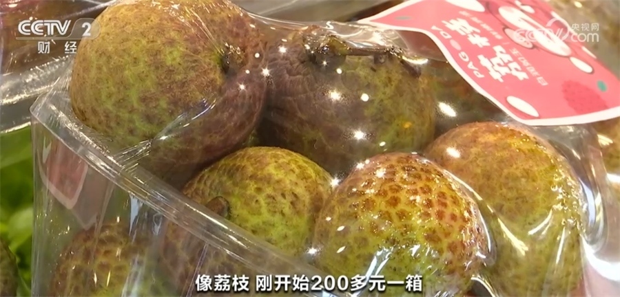 北京新發(fā)地市場水果商戶 許景菊:(原來)價格高的現(xiàn)在都往下降,像荔枝剛開始200多(元)一箱,現(xiàn)在降到70來元(一箱)。