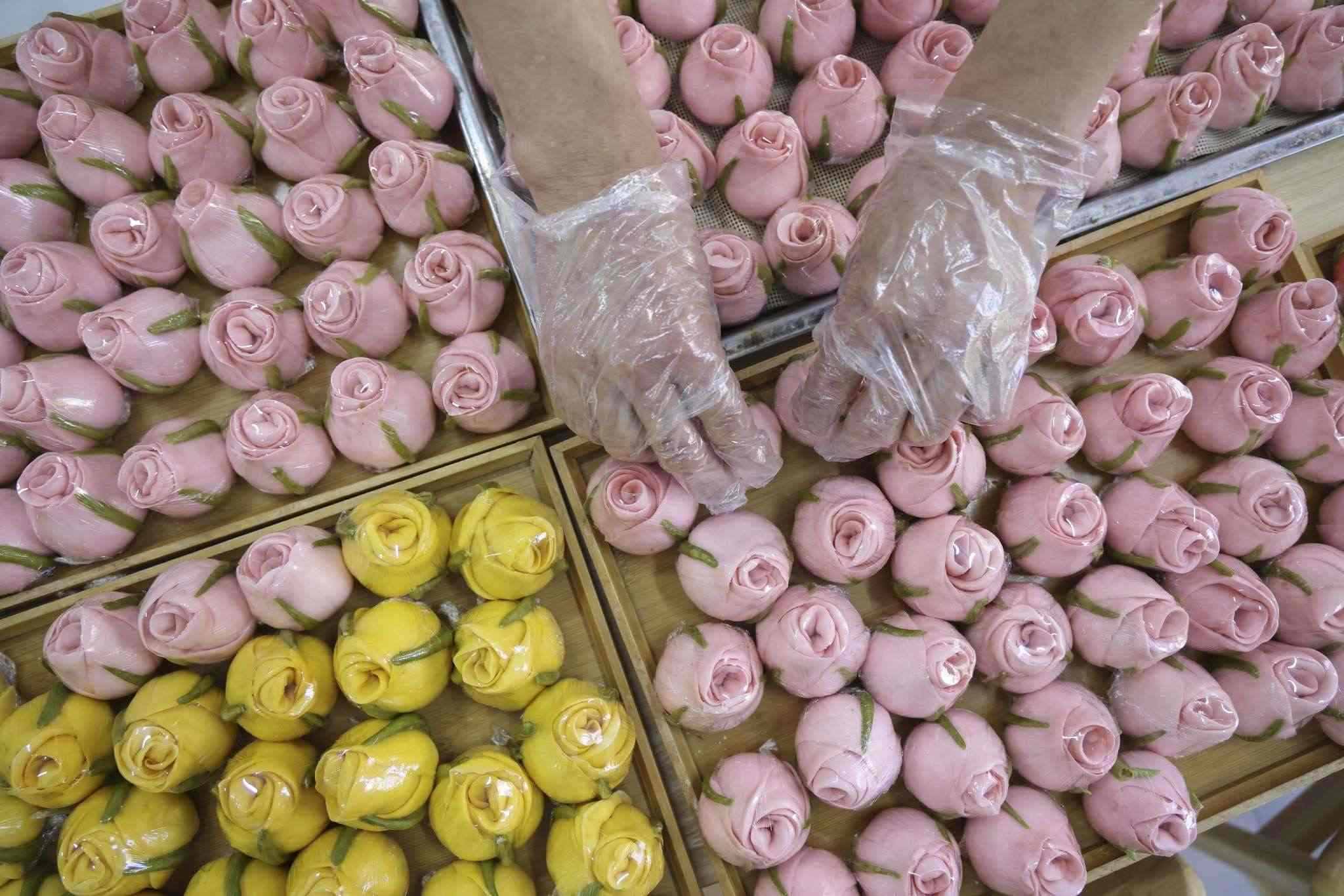 2023年5月12日,山東臨沂,母親節(jié)來(lái)臨之際,面點(diǎn)師們制作出色彩鮮艷、軟糯香甜的花饃,受到廣大顧客青睞。視覺(jué)中國(guó)
