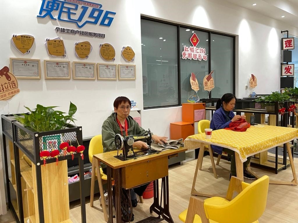 因手藝好、做活快、價格低廉,來自安徽的何阿姨在松江做毛衣修補(bǔ)已有20個年頭。由于租不起門面,長久以來她只能在菜場門口支個小攤,刮風(fēng)下雨也沒個遮擋。前不久,當(dāng)?shù)厥袌霰O(jiān)管部門的工作人員主動聯(lián)系何阿姨,依托紅領(lǐng)匯196黨群服務(wù)站為經(jīng)營場所,為她辦理了營業(yè)執(zhí)照,還提供了干凈明亮的獨(dú)立經(jīng)營空間。
