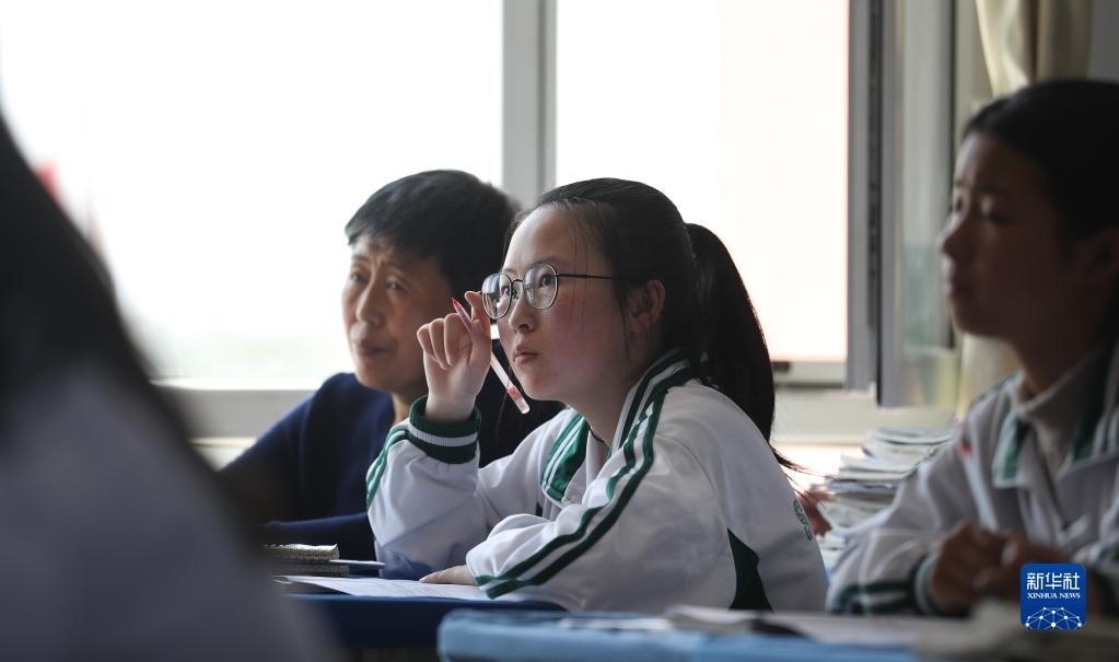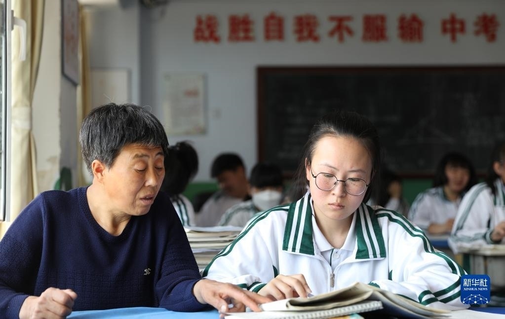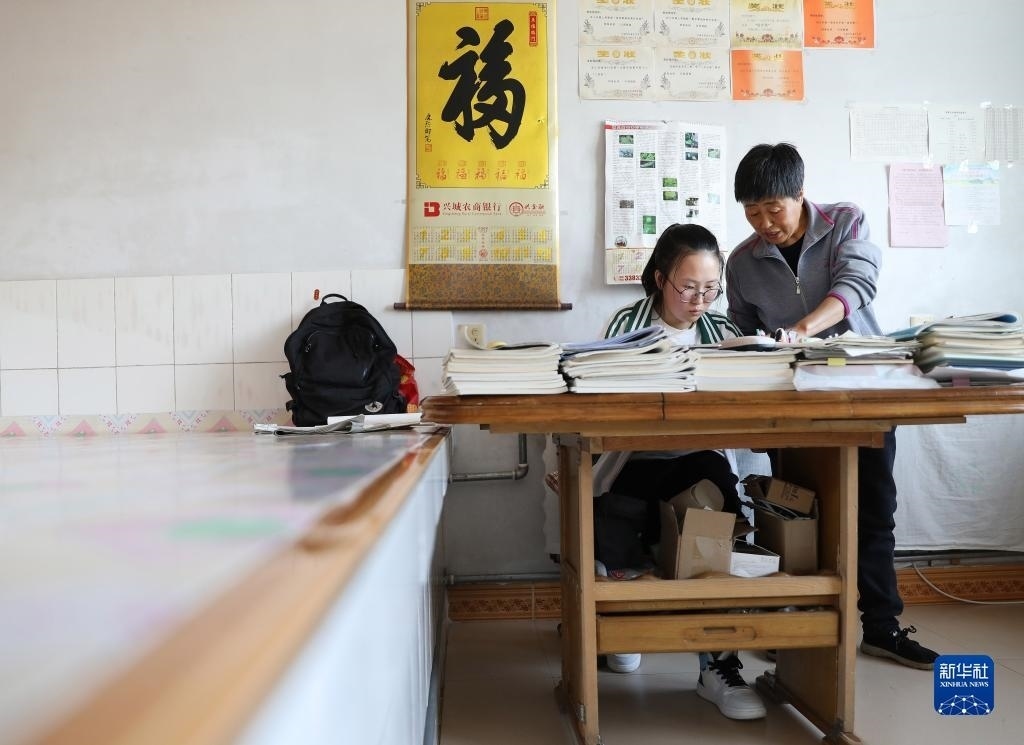 張連琴(左)和女兒李昕偉在教室內(nèi)聽(tīng)課(5月8日攝)。
