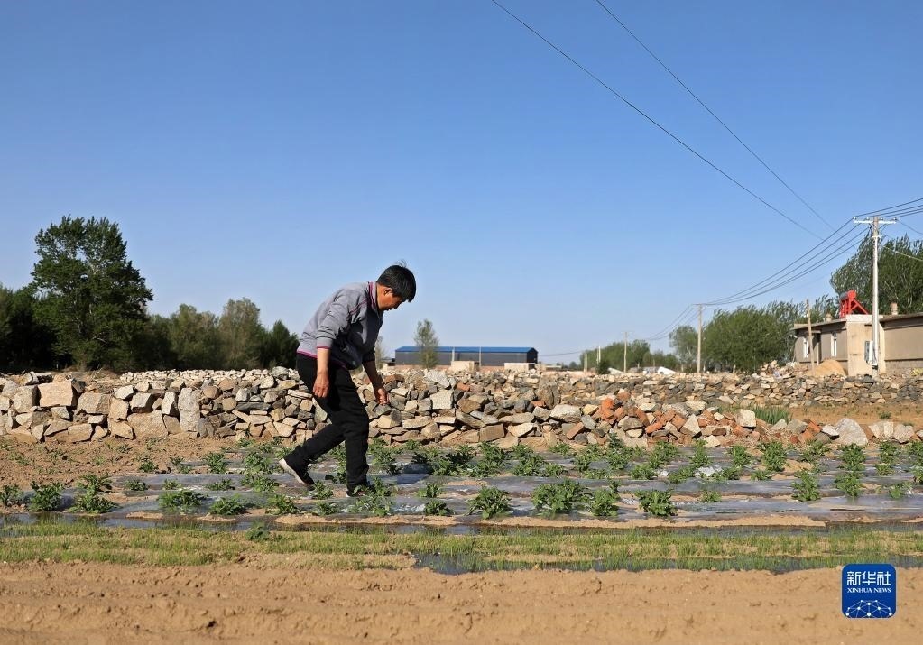 張連琴在維護(hù)自家菜地(5月7日攝)。