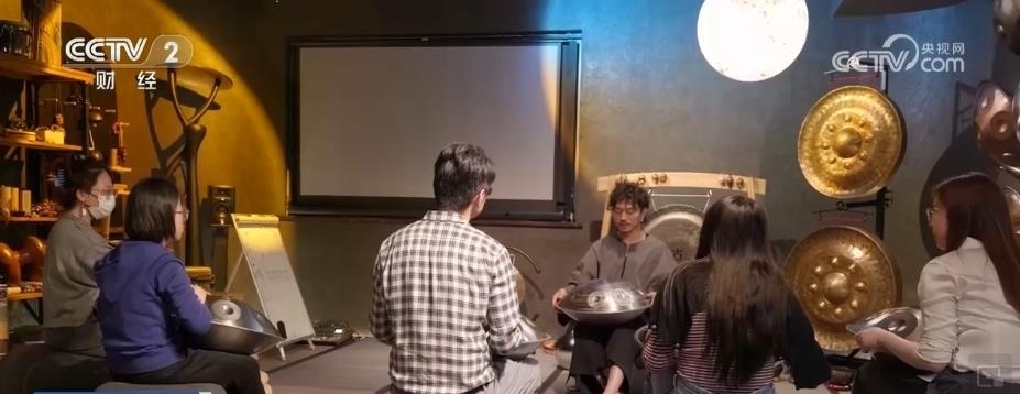 傳統(tǒng)小店被賦予了新場景的同時,一些新奇有趣的業(yè)態(tài)也找到了生存的土壤。晚上7點30分,在上海長寧區(qū)的一個寫字樓里,一場手碟培訓(xùn)課正在進(jìn)行中。席地而坐的竹席、深灰色的墻面和月球燈營造出治愈沉靜的氣氛,手碟空靈的聲音不時響起。