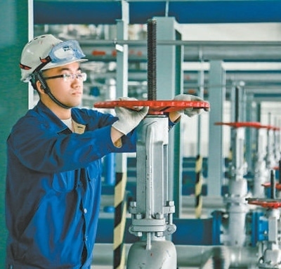 工人檢查設(shè)備運(yùn)行情況。