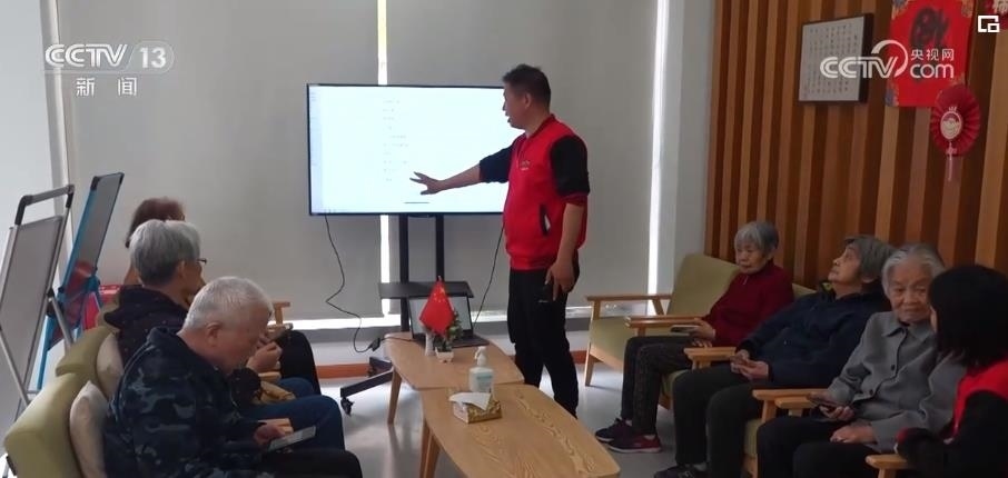在上海普陀區(qū)長風(fēng)街道,社區(qū)工作人員正在和外賣平臺(tái)工作人員集體培訓(xùn)老年人用手機(jī)APP的“長輩模式”來解決點(diǎn)餐、買菜、買藥等日常生活需要。