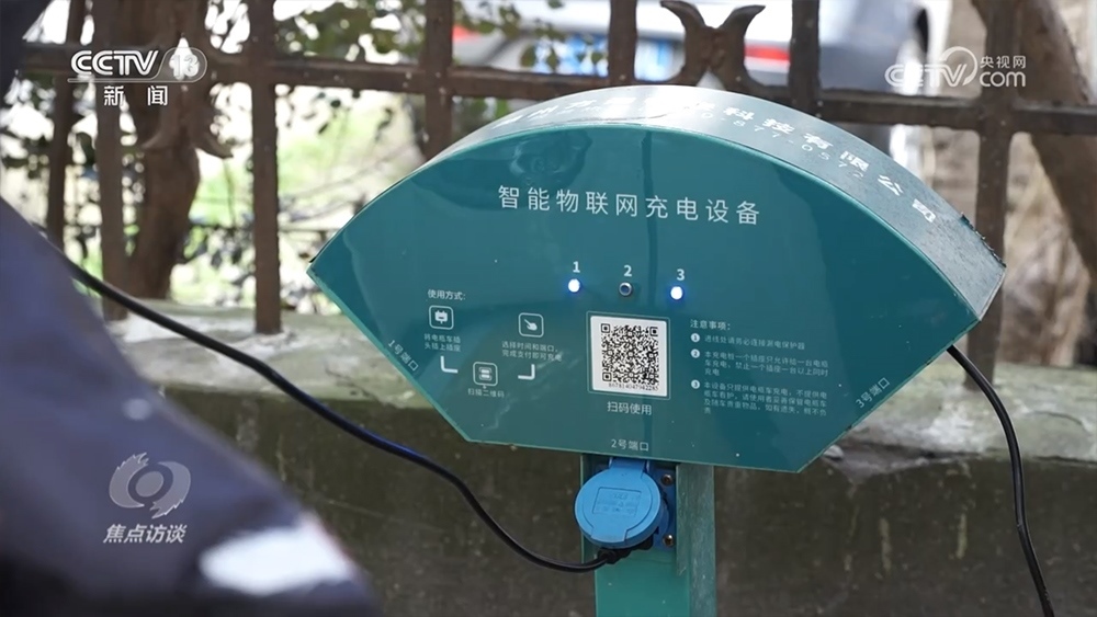 黃永強:“車庫后來我們進(jìn)行了改造,把面積擴大了。同時,在車庫內(nèi)和車庫外裝了智能充電樁,一般電動自行車充5個小時足夠了,到了5個小時之后自然會斷電,就很安全了。而且費用政府也補貼,自己出4毛5,政府也出4毛5。”