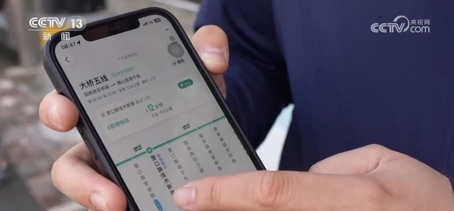 總臺央視記者 吳天白:除了共享單車用上了北斗芯片,坐公交車我們也能體會到北斗帶來的便利。通過車站的站牌可以看到公交車的班次。這輛公交車開到哪里了?還有多久到?我們打開導(dǎo)航軟件,這些信息一目了然,出門前就可以合理規(guī)劃時間,選擇我們的出行交通工具。