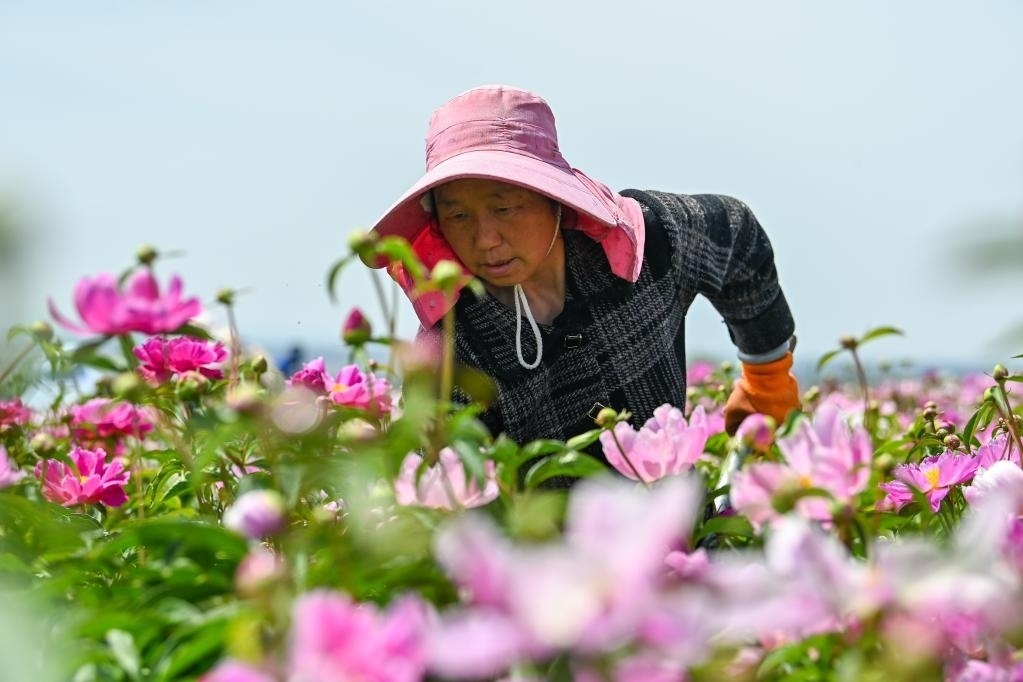 “花經(jīng)濟(jì)”持續(xù)升溫下,越來越多農(nóng)民走出家門,成為產(chǎn)業(yè)工人。入夏,走進(jìn)伊寧縣天山花海景區(qū),連片芍藥、亞麻花爭相盛開,工人正在田間加緊除草、養(yǎng)護(hù)。