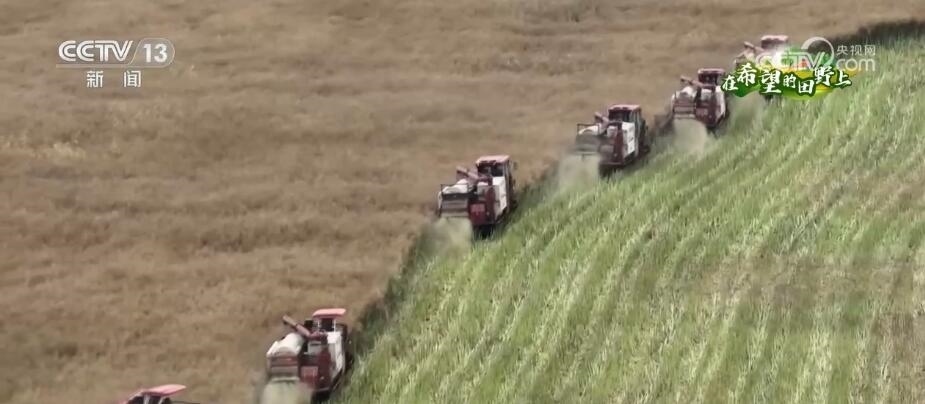 總臺(tái)央視記者 陳燁煒:我現(xiàn)在是在湖北省枝江市的一處油菜地里,在我身后,幾臺(tái)收割機(jī)正來(lái)回穿梭作業(yè)。今年這里采用的是分段式收割方法,這種方式可以大大降低機(jī)收的損失率,助力增產(chǎn)增收。