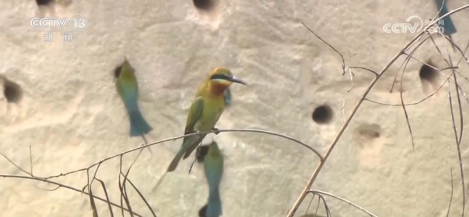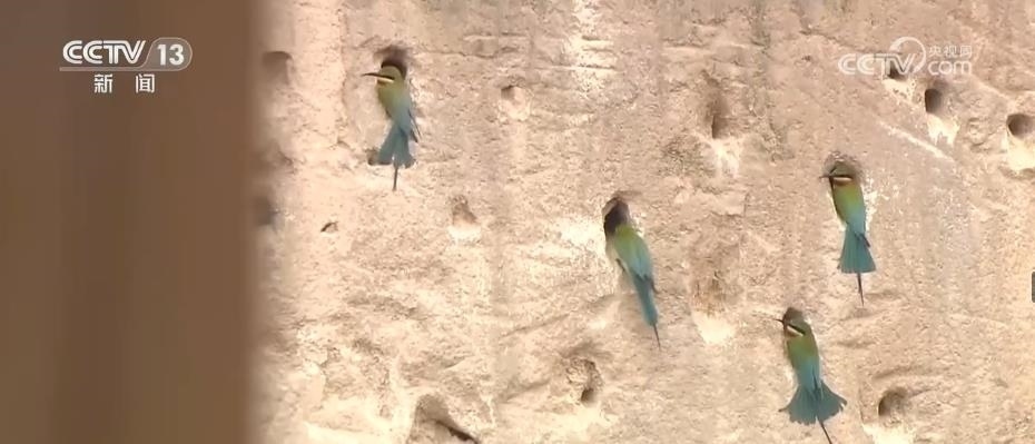 眼前,這些看上去很像是泥巴墻的建筑,其實(shí)是人工建造的候鳥(niǎo)巢穴。根據(jù)栗喉蜂虎的生活習(xí)慣,保護(hù)區(qū)工作人員專門在它們回來(lái)之前就對(duì)懸壁進(jìn)行修整,讓這些美麗的小鳥(niǎo)更方便安家。