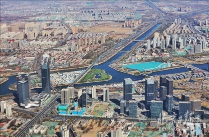 今天,古塔腳下,新城崛起。登臨五河交匯處的高樓觀景平臺,憑欄眺望,只見運河水道兩側,現(xiàn)代化樓宇鱗次櫛比。這里是城市副中心運河商務區(qū)所在地,20679家注冊企業(yè)入駐、包括國家級綠色交易所在內的一批重大項目相繼落戶,為其注入勃發(fā)生機。