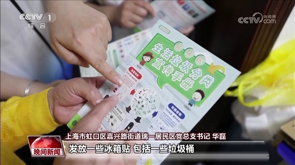 上海市虹口區(qū)嘉興路街道瑞一居民區(qū)黨總支書記 華磊:有的居民,他一開始就是不知道這個垃圾分類是怎么分類的。那么,我們就會挨家挨戶從黨員家庭開始做起,然后來帶頭。每個樓我們都有每個樓的志愿者來上門發(fā)放一些冰箱貼,包括一些垃圾桶,或者是小的一些蓋子等等的,來幫助大家。