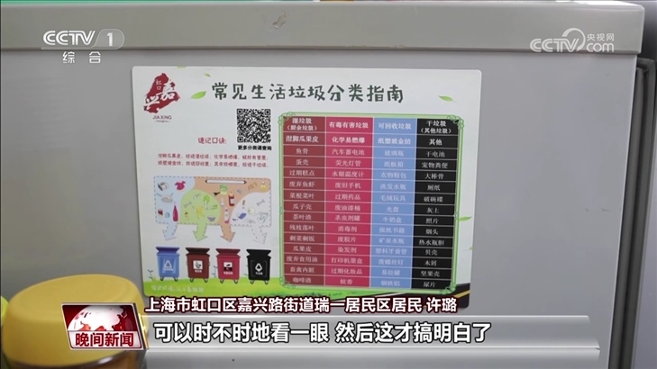 上海市虹口區(qū)嘉興路街道瑞一居民區(qū)居民 許璐:剛開始我們也搞不明白什么算是濕垃圾,什么算是干垃圾,然后看了小冊子,看了一些廣告,看還有冰箱貼,天天貼著那個上頭,可以時不時地看一眼,然后這才搞明白了。