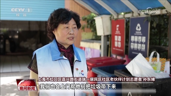 上海市虹口區(qū)嘉興路街道瑞一居民區(qū)社區(qū)老伙伴計劃志愿者 孫東娣:就是有些老人腿腳不方便,我們也會上門幫他們把垃圾帶下來,也會跟他們講一些這方面的知識。
