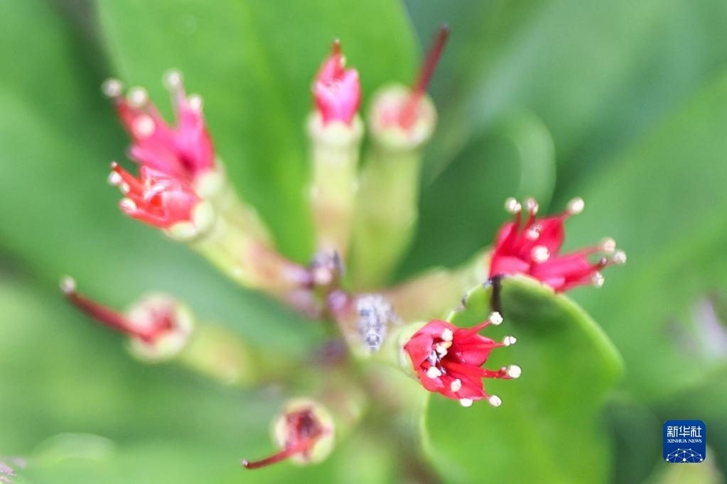 這是5月23日在海南東寨港國(guó)家級(jí)自然保護(hù)區(qū)拍攝的紅欖李花朵。