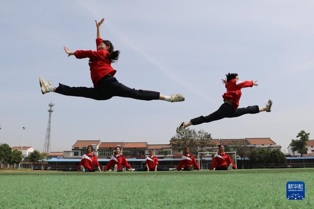 5月23日,河南省焦作市溫縣實驗高中高三學生在操場上做活動減壓。