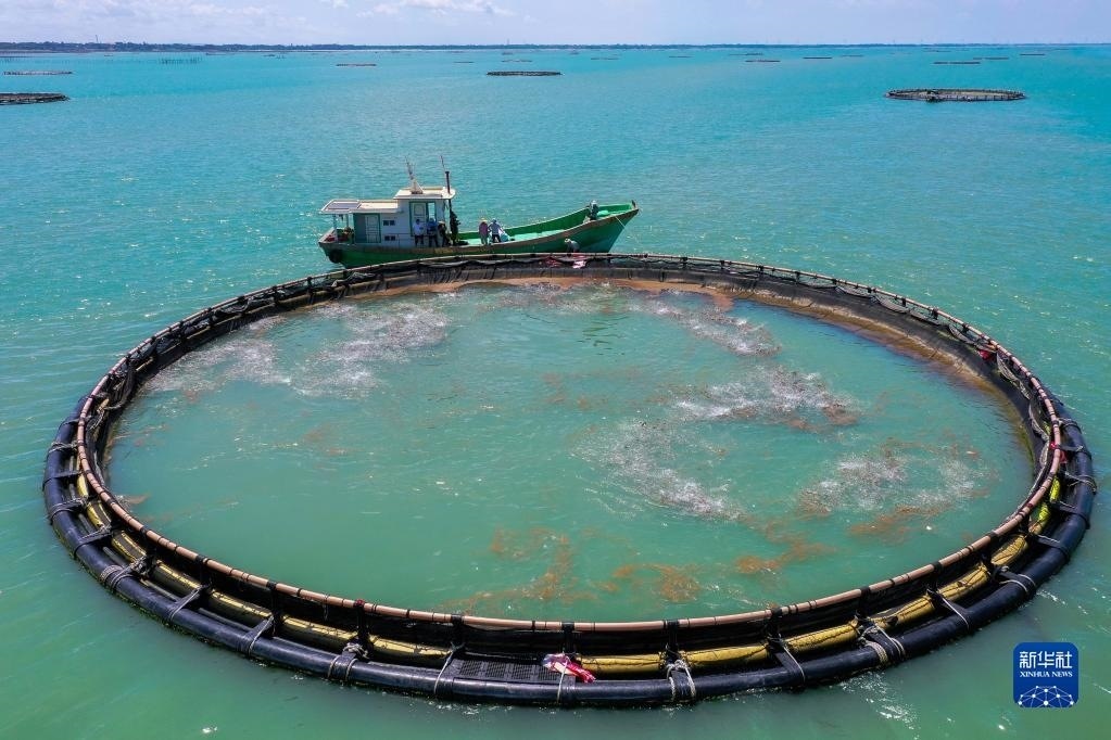 湛江徐聞西連鎮(zhèn)的“海上牧場”(5月27日攝,無人機照片)。