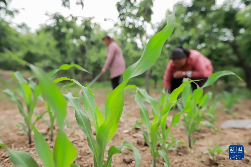 5月25日,在河北省遷西縣太平寨鎮(zhèn)馮莊村,農(nóng)民在管護(hù)栗樹(shù)林套種的玉米。