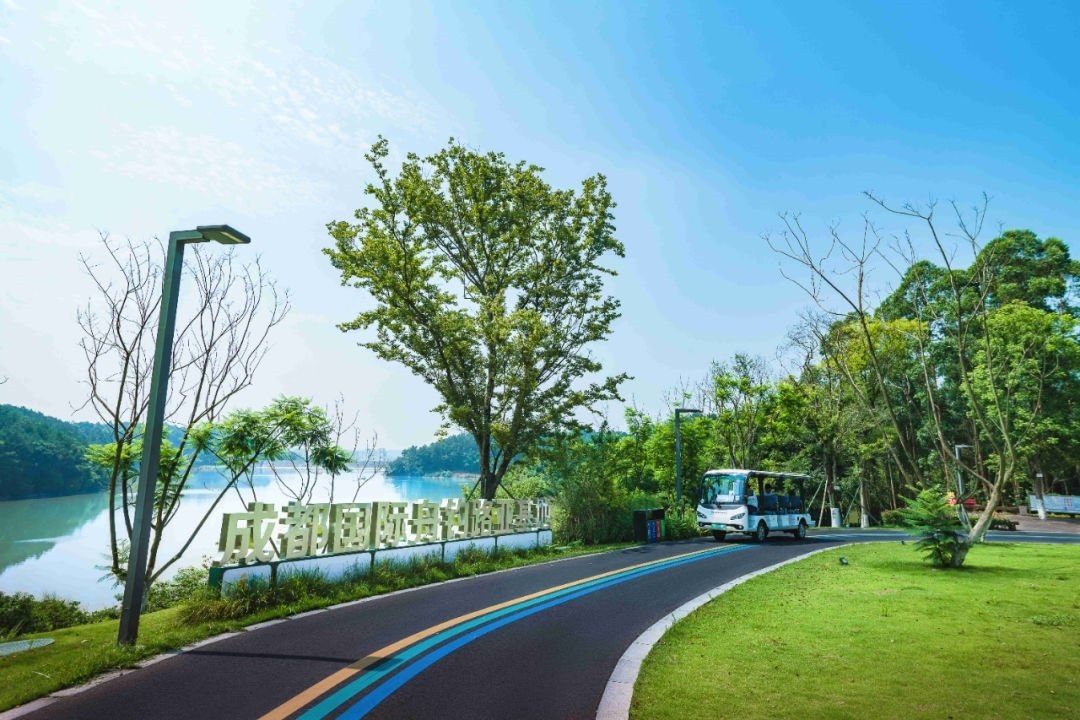 圖為成都天府國際生物城內(nèi)的環(huán)湖步道。 成都天府國際生物城供圖