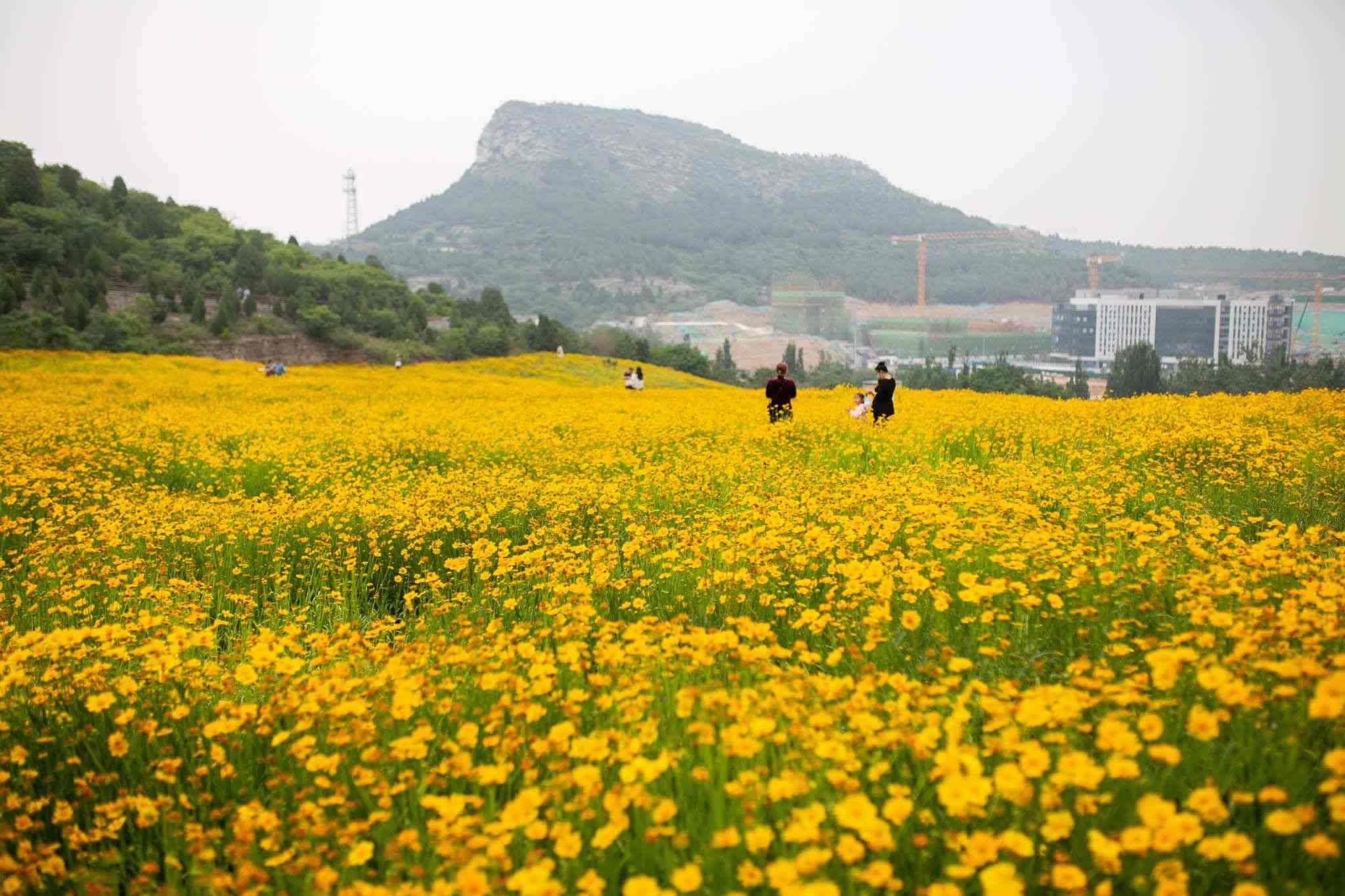 2023年5月26日,濟(jì)南蚰蜒山,山谷大片的金雞菊盛開,宛如一片黃色的花海。視覺中國(guó)