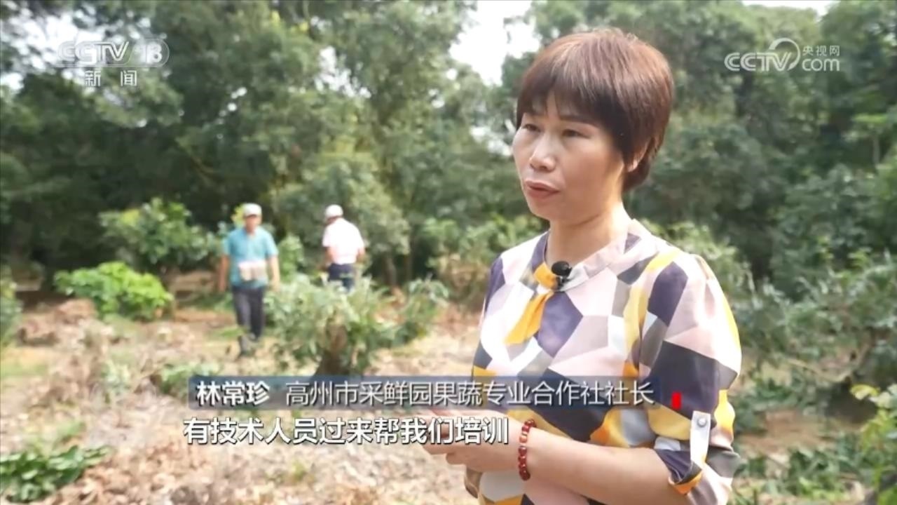 高州市采鮮園果蔬專業(yè)合作社社長(zhǎng)林常珍:“有技術(shù)人員過(guò)來(lái)培訓(xùn),我們老百姓很高興。我們那些師傅現(xiàn)在學(xué)的技術(shù)都好成熟了。”