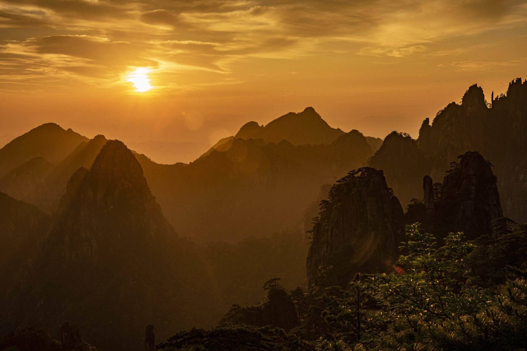 2023年5月29日,安徽黃山,初夏時(shí)節(jié),霞光渲染下的奇峰秀色令人流連忘返。視覺(jué)中國(guó)