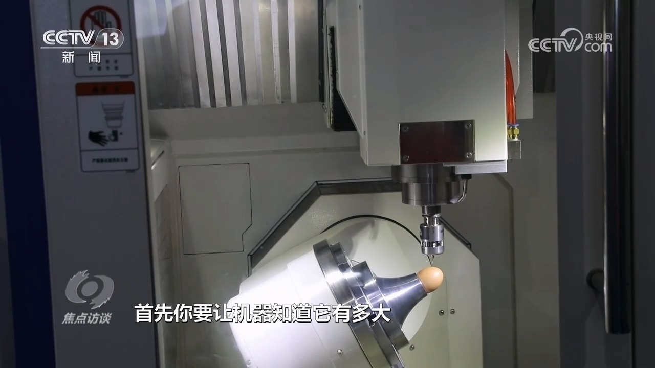 北京中關(guān)村精雕智造科技創(chuàng)新中心副總經(jīng)理?xiàng)铄i:“一個(gè)是識(shí)別,給機(jī)床安上了一雙眼睛,能知道雞蛋長(zhǎng)什么樣子;另外一個(gè)就是要求機(jī)床精度和穩(wěn)定性非常高,保證雞蛋永遠(yuǎn)刻不爛、刻不破?!?/p>