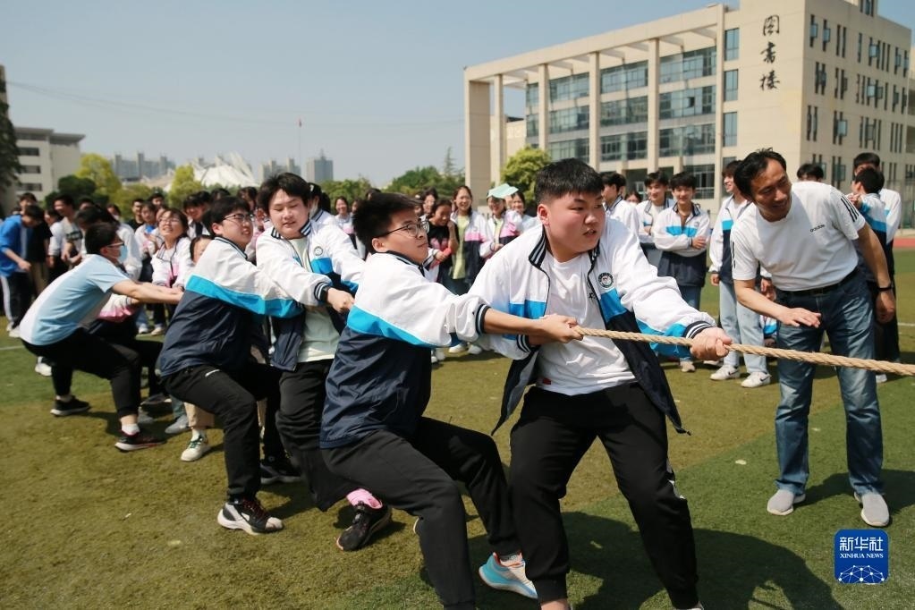 高考臨近,安徽省淮北市第十二中學(xué)組織高三年級(jí)學(xué)生開展豐富多彩的集體減壓活動(dòng),讓學(xué)生們?cè)谌の队螒蛑嗅尫艍毫?,以輕松、樂觀、自信的心態(tài)迎接高考。新華社發(fā)(萬(wàn)善朝 攝)