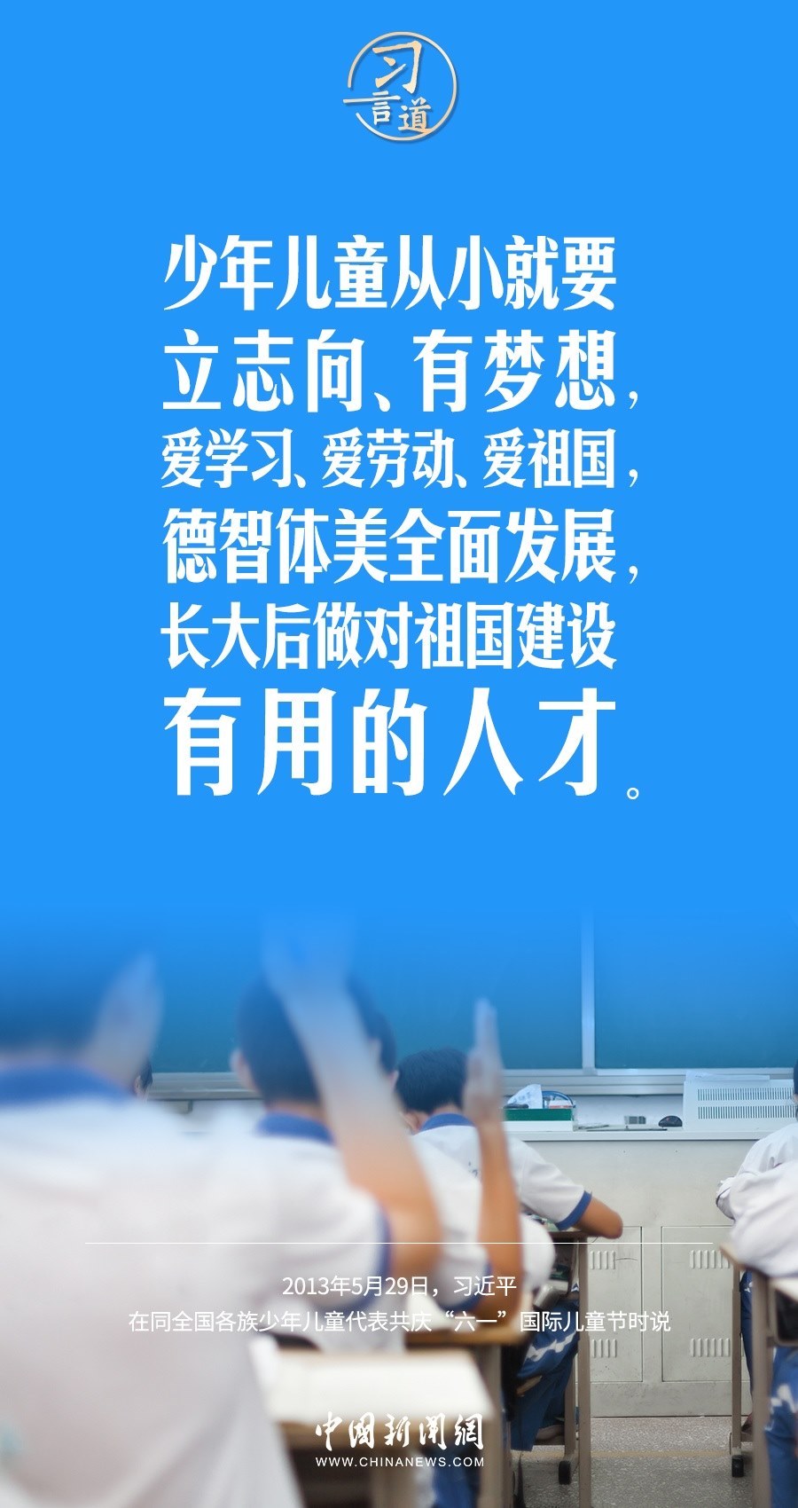 “六一”國際兒童節(jié)到了。習(xí)近平總書記高度重視少年兒童的健康成長,多次寄語少年兒童,希望他們有夢想、愛學(xué)習(xí),成為對(duì)祖國建設(shè)有用的人才。