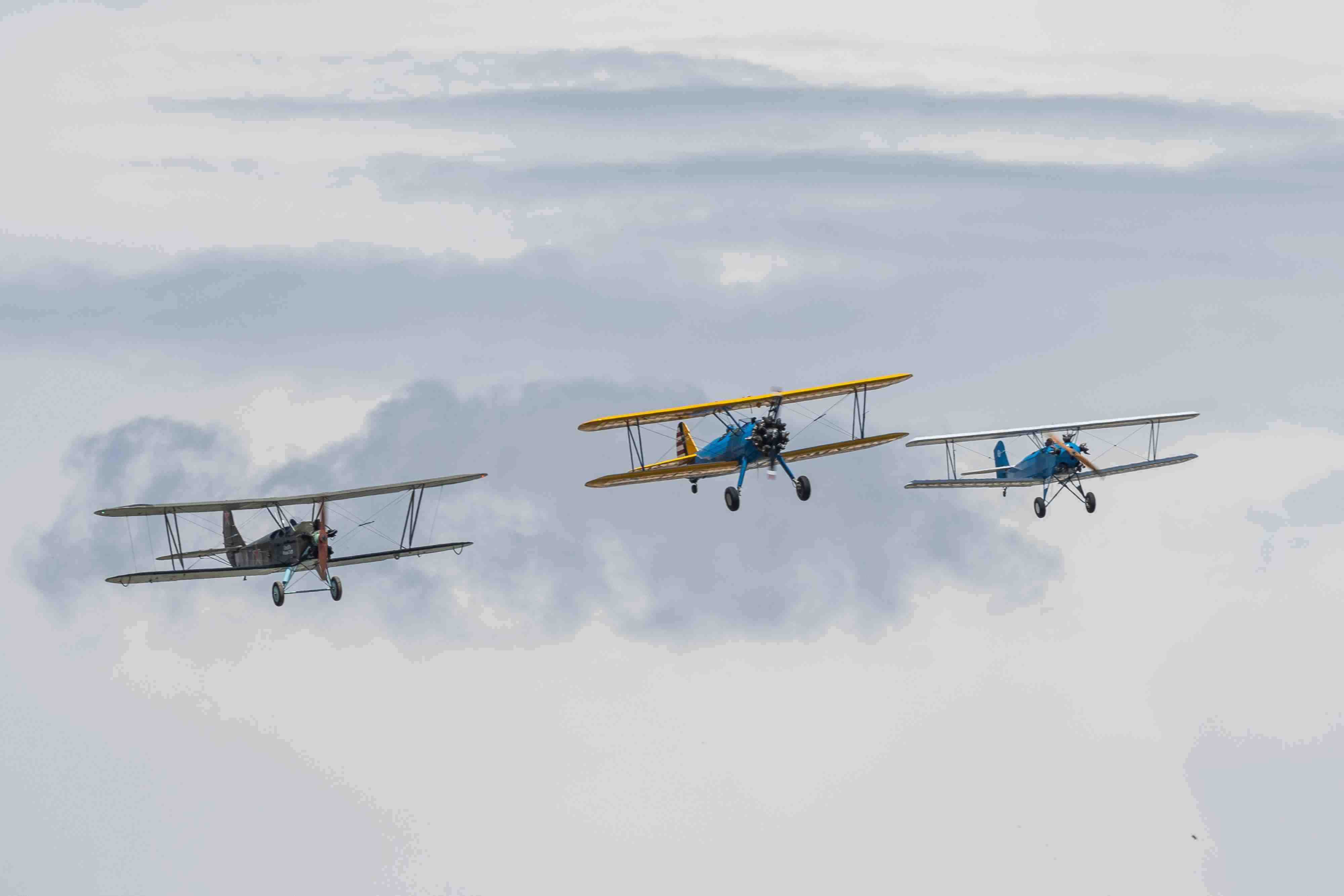 當(dāng)?shù)貢r(shí)間2023年6月4日,西班牙馬德里舉行老式飛機(jī)航空展,多型老式飛機(jī)進(jìn)行飛行表演。 視覺中國