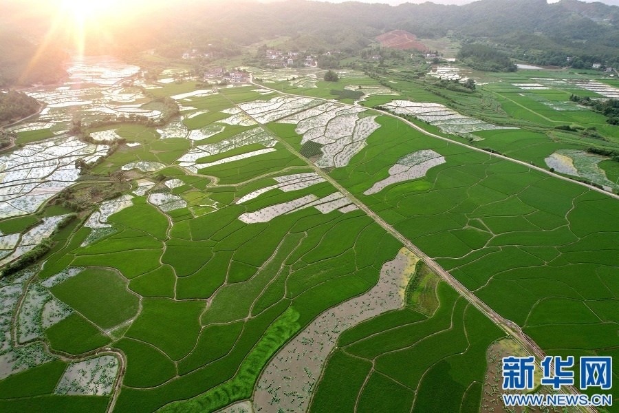廣昌縣頭陂鎮(zhèn)早稻進(jìn)入分蘗期,長(zhǎng)勢(shì)良好。新華網(wǎng)發(fā) 危仁鵬 攝