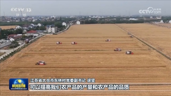 在今年的麥?zhǔn)找痪€,更多的綠色生產(chǎn)模式正在推廣。江蘇省太倉(cāng)市東林村引進(jìn)先進(jìn)設(shè)備,把收割后的秸稈加工成高質(zhì)量的牛羊飼料,而牛羊產(chǎn)生的糞肥經(jīng)過(guò)發(fā)酵后制成有機(jī)肥拋撒還田,實(shí)現(xiàn)種養(yǎng)循環(huán)。