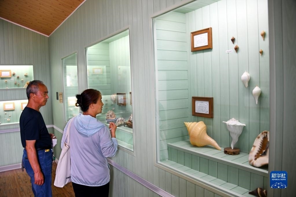 山東省青島市靈山島上有一座用各種貝殼裝飾而成的“貝殼樓”,該建筑外墻、屋頂以及部分地面均采用貝殼裝飾、鑲嵌,其覆蓋面積約1500平方米。據(jù)介紹,“貝殼樓”始建于1986年,歷時(shí)20多年逐步完善而成。許多游客前來觀光打卡。新華社記者 李紫恒 攝