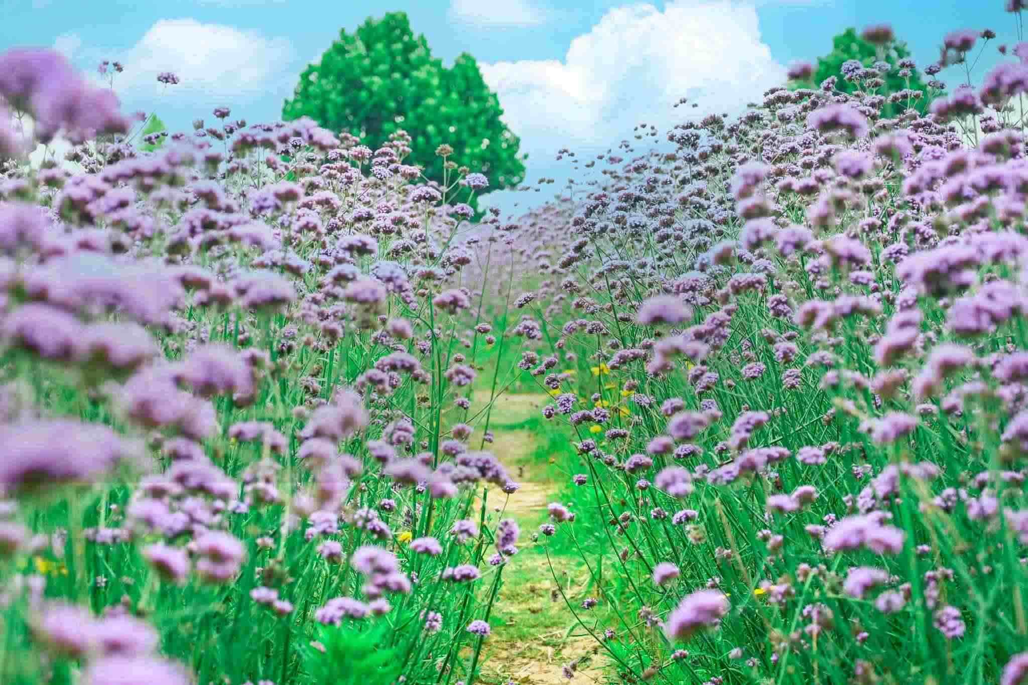 武漢:馬鞭草綻放 紫色小花隨風搖曳
