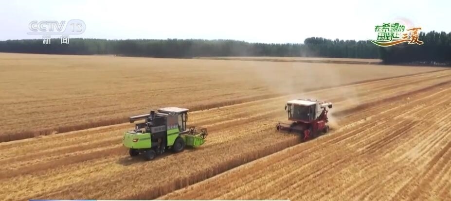 總臺央視記者 邵海成:我現(xiàn)在是在河南省西平縣,我身后是1萬多畝的小麥良種基地。當(dāng)?shù)卣{(diào)集10臺大馬力收割機(jī)參與小麥種子的搶收,每小時收割小麥400多畝。