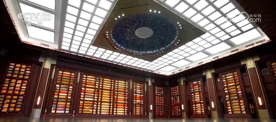 中國國家版本館中央總館的主體建筑之一文華堂是中央挑空兩層、高達13米的“國家書房”。接下來,我們就走進這座國家級的版本陳列殿堂。