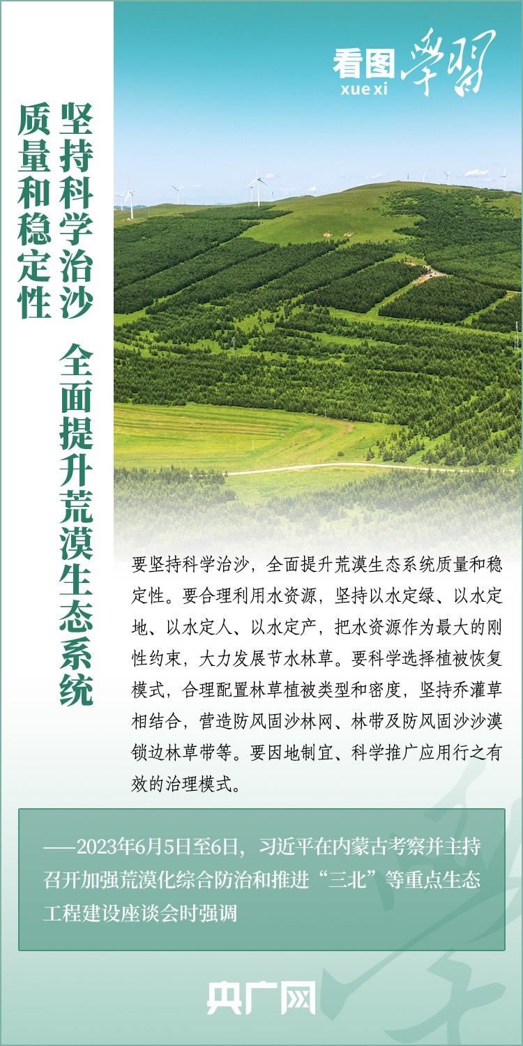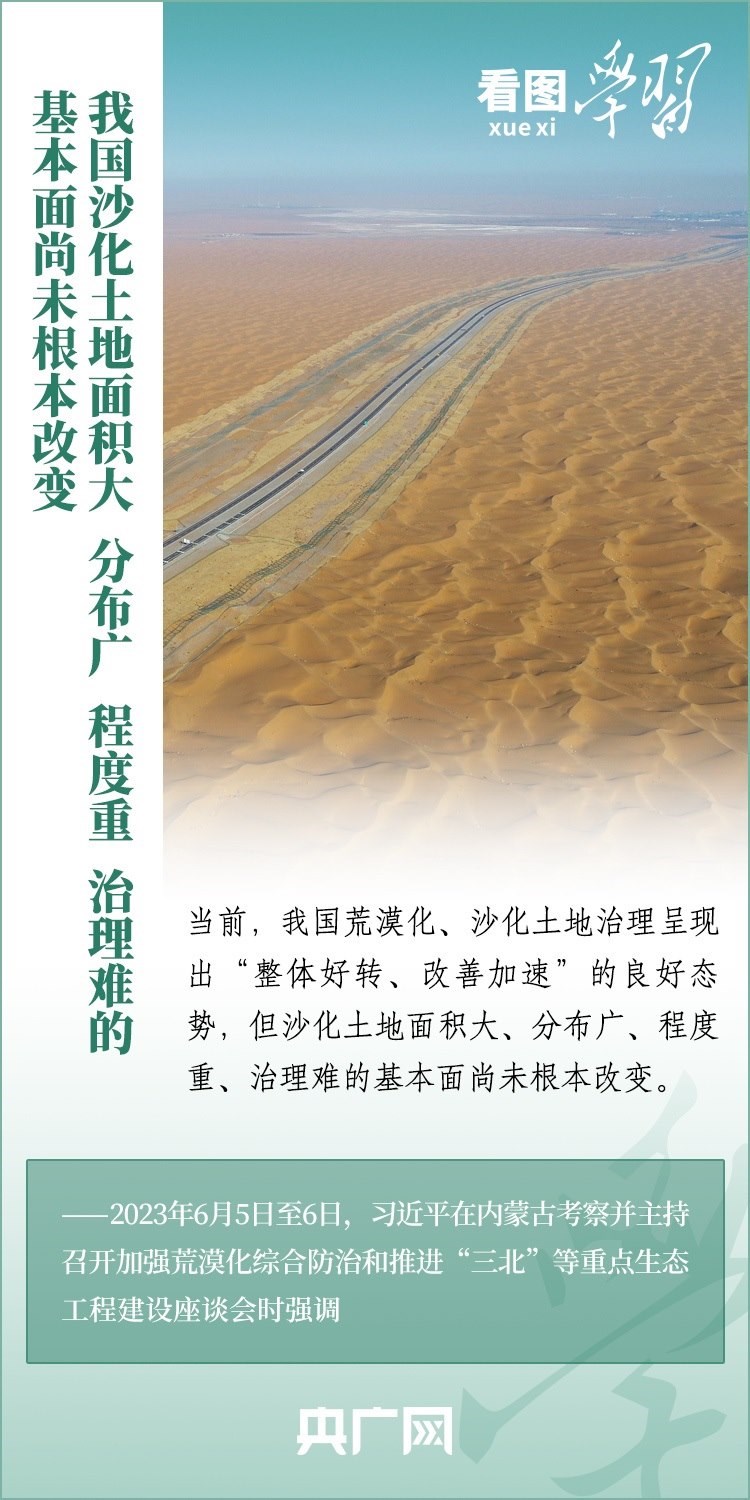 6月5日至6日,習(xí)近平總書記來到內(nèi)蒙古自治區(qū)巴彥淖爾市,深入自然保護(hù)區(qū)、現(xiàn)代農(nóng)業(yè)示范園區(qū)、林場、水利部門等考察調(diào)研,主持召開加強(qiáng)荒漠化綜合防治和推進(jìn)“三北”等重點(diǎn)生態(tài)工程建設(shè)座談會并發(fā)表重要講話。總書記強(qiáng)調(diào),要勇?lián)姑?、不畏艱辛、久久為功,努力創(chuàng)造新時(shí)代中國防沙治沙新奇跡,把祖國北疆這道萬里綠色屏障構(gòu)筑得更加牢固,在建設(shè)美麗中國上取得更大成就。一起來學(xué)習(xí)!