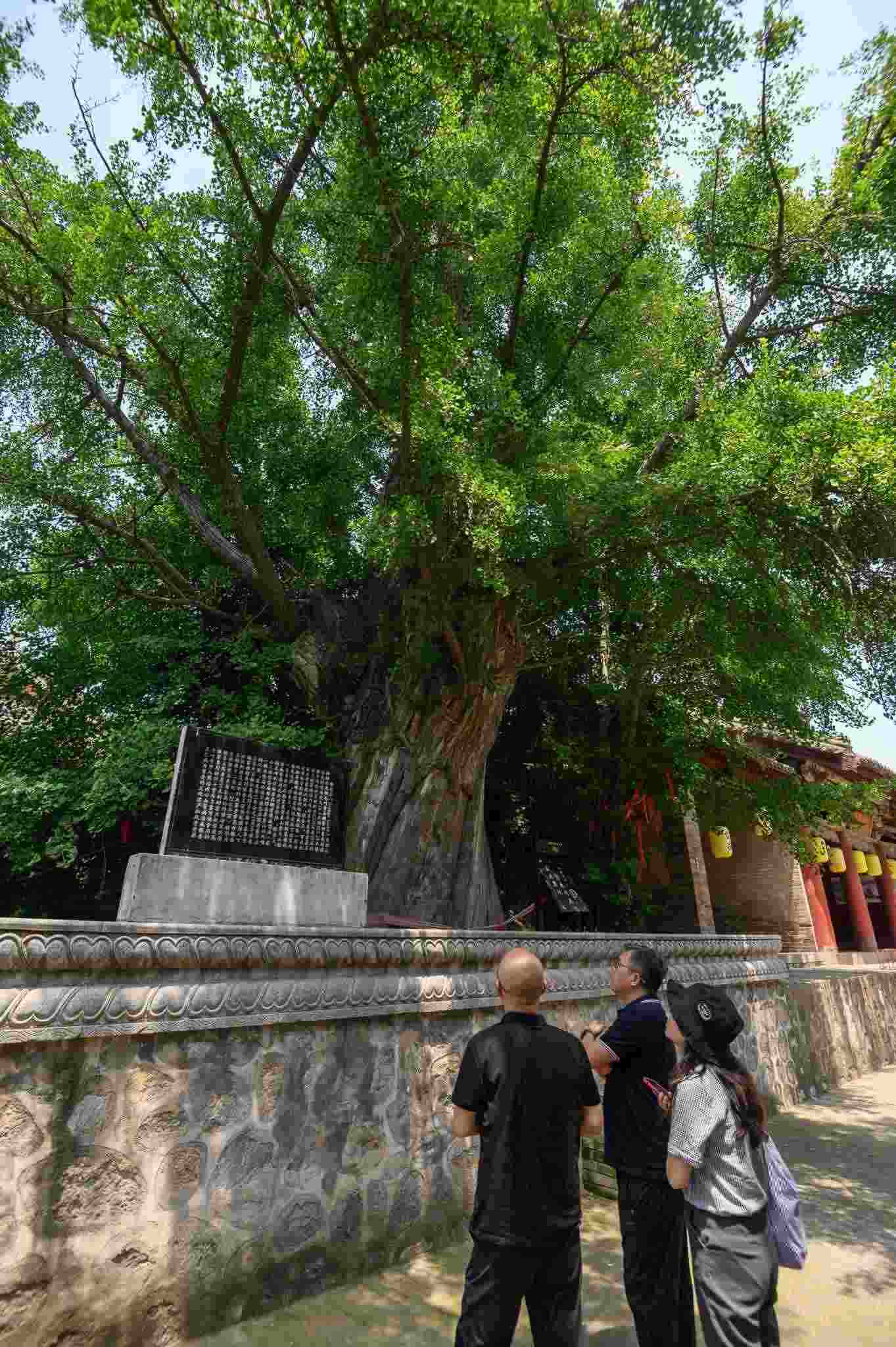 2023年6月9日,山西省晉城市,游客在古村落冶底村參觀古銀杏樹(shù)。據(jù)樹(shù)旁碑文記載,這棵銀杏樹(shù)高25.4米,胸徑3.25米,樹(shù)齡大約為6200年。視覺(jué)中國(guó)