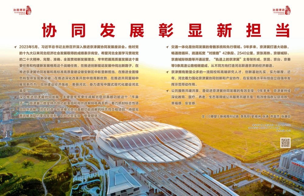 ◇2023年5月,習近平總書記主持召開深入推進京津冀協(xié)同發(fā)展座談會。他對黨的十九大以來河北經(jīng)濟社會發(fā)展取得的成績表示肯定,希望河北全面學習貫徹黨的二十大精神,完整、準確、全面貫徹新發(fā)展理念,牢牢把握高質(zhì)量發(fā)展這個首要任務和構(gòu)建新發(fā)展格局這個戰(zhàn)略任務,在推進創(chuàng)新驅(qū)動發(fā)展中闖出新路子,在推進京津冀協(xié)同發(fā)展和高標準高質(zhì)量建設雄安新區(qū)中彰顯新?lián)?,在推進全面綠色轉(zhuǎn)型中實現(xiàn)新突破,在推進深化改革開放中培育新優(yōu)勢,在推進共同富裕中展現(xiàn)新作為,加快建設經(jīng)濟強省、美麗河北,奮力譜寫中國式現(xiàn)代化建設河北篇章。