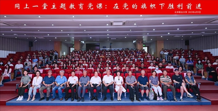觀展后,參會嘉賓與管理學(xué)院200多名學(xué)生黨員及入黨積極分子在南院報告廳,共同開展“同上一堂主題教育專題黨課,在黨的旗幟下勝利前進”黨課活動。此次講座由管理學(xué)院黨委書記張玲娜主持,由北京新四軍暨華中抗日根據(jù)地研究會原副會長劉華蘇主講。