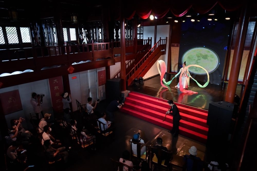 演員在北京顏料會(huì)館表演中國(guó)傳統(tǒng)舞蹈節(jié)目。新華社記者陳鐘昊 攝
