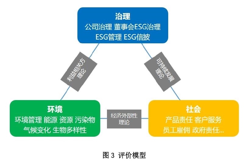 基于此,我們?cè)跇?gòu)建ESG評(píng)價(jià)模型時(shí),打破現(xiàn)有主流ESG評(píng)級(jí)體系重點(diǎn)關(guān)注ESG風(fēng)險(xiǎn)管理(即企業(yè)的負(fù)外部性)的常規(guī)思路,將企業(yè)經(jīng)營(yíng)發(fā)展對(duì)社會(huì)環(huán)境的正向價(jià)值與貢獻(xiàn)(即企業(yè)的正外部性)納入考量,創(chuàng)新構(gòu)建了包含“環(huán)境、社會(huì)、治理”三個(gè)維度且兼顧風(fēng)險(xiǎn)管理和社會(huì)價(jià)值貢獻(xiàn)的ESG評(píng)價(jià)模型(見圖3)。