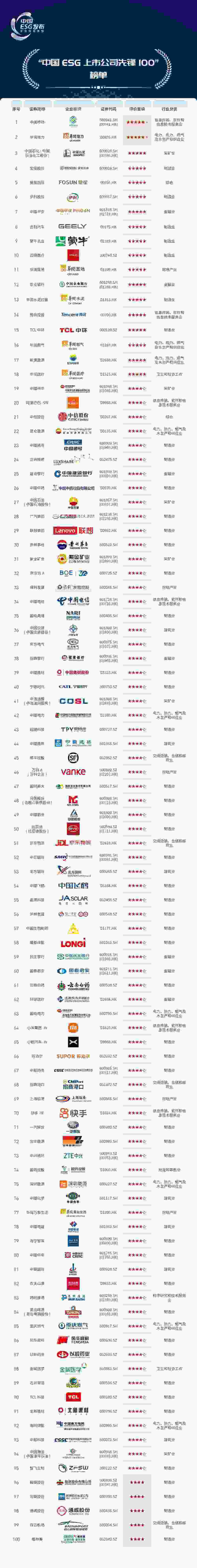 經(jīng)分析,中國(guó)移動(dòng)、華潤(rùn)電力、中國(guó)石化、寶鋼股份、復(fù)星國(guó)際、伊利股份、中國(guó)平安、吉利汽車、蒙牛乳業(yè)和邁瑞醫(yī)療等100家上市公司入選“中國(guó)ESG上市公司先鋒100”。