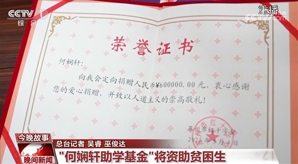 經過安徽省紅十字會和江蘇省蘇州市紅十字會的聯(lián)系協(xié)調,何嫻軒老人的善款最終被定向捐獻給她家鄉(xiāng)安徽省的天長中學,用于資助品學兼優(yōu)的貧困學生。
