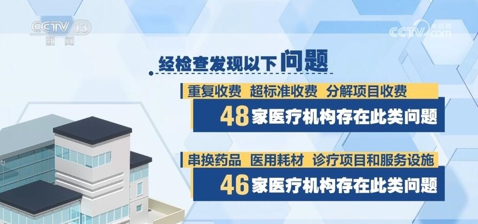 國家飛檢組共抽查了48家定點醫(yī)療機(jī)構(gòu),包括三級公立醫(yī)院40家、三級民營醫(yī)院3家、二級以下民營醫(yī)療機(jī)構(gòu)5家,經(jīng)檢查發(fā)現(xiàn)以下問題:一、重復(fù)收費、超標(biāo)準(zhǔn)收費、分解項目收費,48家醫(yī)療機(jī)構(gòu)存在此類問題。二、串換藥品、醫(yī)用耗材、診療項目和服務(wù)設(shè)施,46家醫(yī)療機(jī)構(gòu)存在此類問題。三、將不屬于醫(yī)?;鹬Ц斗秶尼t(yī)藥費用納入醫(yī)保基金結(jié)算,43家醫(yī)療機(jī)構(gòu)存在此類問題。四、違反診療規(guī)范過度診療、過度檢查、超量開藥,39家醫(yī)療機(jī)構(gòu)存在此類問題。此外,部分醫(yī)療機(jī)構(gòu)存在分解住院,藥品、醫(yī)用耗材進(jìn)銷存不符,未嚴(yán)格執(zhí)行國家組織藥品耗材集中帶量采購政策,按病種付費模式下高靠病組、低標(biāo)準(zhǔn)入院等其他違法違規(guī)問題;一些醫(yī)療機(jī)構(gòu)存在虛構(gòu)醫(yī)藥服務(wù)項目問題。